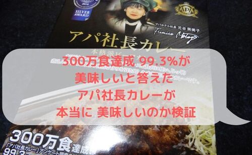 アパ社長カレーが支持率99.3%ということでおいしいのか実際に食べたのでレビューしていきます ブロガー。矢沢ゆめです (@yume_ism) レトルトカレーって好きな人いる?? わたしは何回かアパホテルに泊まって、フロントや食事コーナーの入口でアパ社長カ…